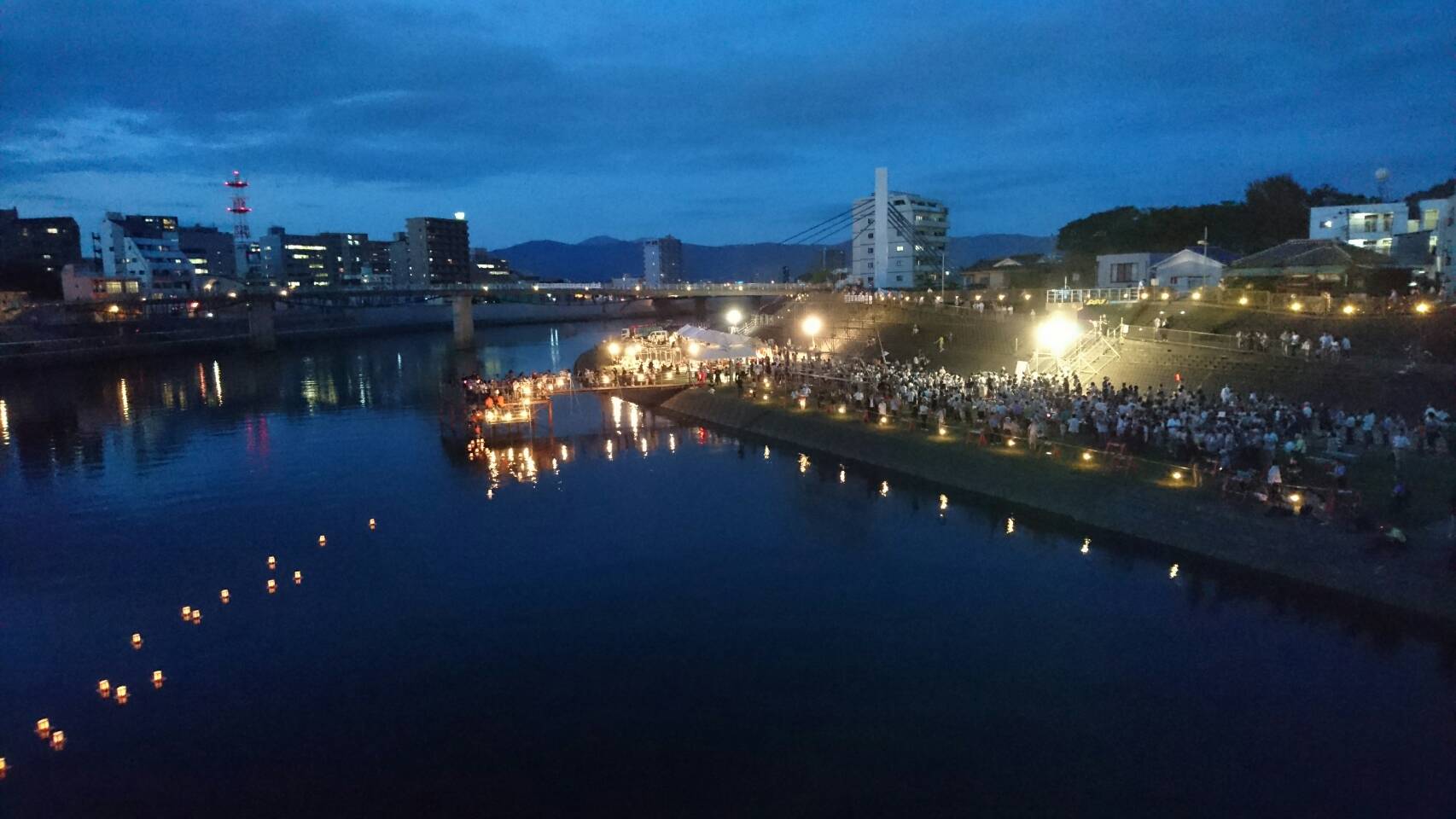 7月29日(金)狩野川河川敷にて『2016度7月第1例会狩野川灯ろう流し』が行われました。1958年9月26日、沼津を含む広い地域に甚大な被害をもたらした狩野川台風。その犠牲者の方々を弔うため執り行われた灯ろう流しは、三回忌を過ぎた仏様を狩野川に送り出し弔うものです。また、現在では、お盆の「送り火」「精霊流し」として多くの市民の皆様にに親しまれ、沼津の夏の風物詩となっております。沼津青年会議所は数十年間にわたり本事業を担ってきました。本年度も沼津市役所、沼津市社会福祉協議会等と協力をし、多くのJCメンバー、18名の学生ボランティアの皆様、そして約20名の先輩方と共に運営を行わさせていただきました。また、セレモニーでは山口遼君、山本真太郎君、峰田泰成君のバッジ授与式も執り行われました。