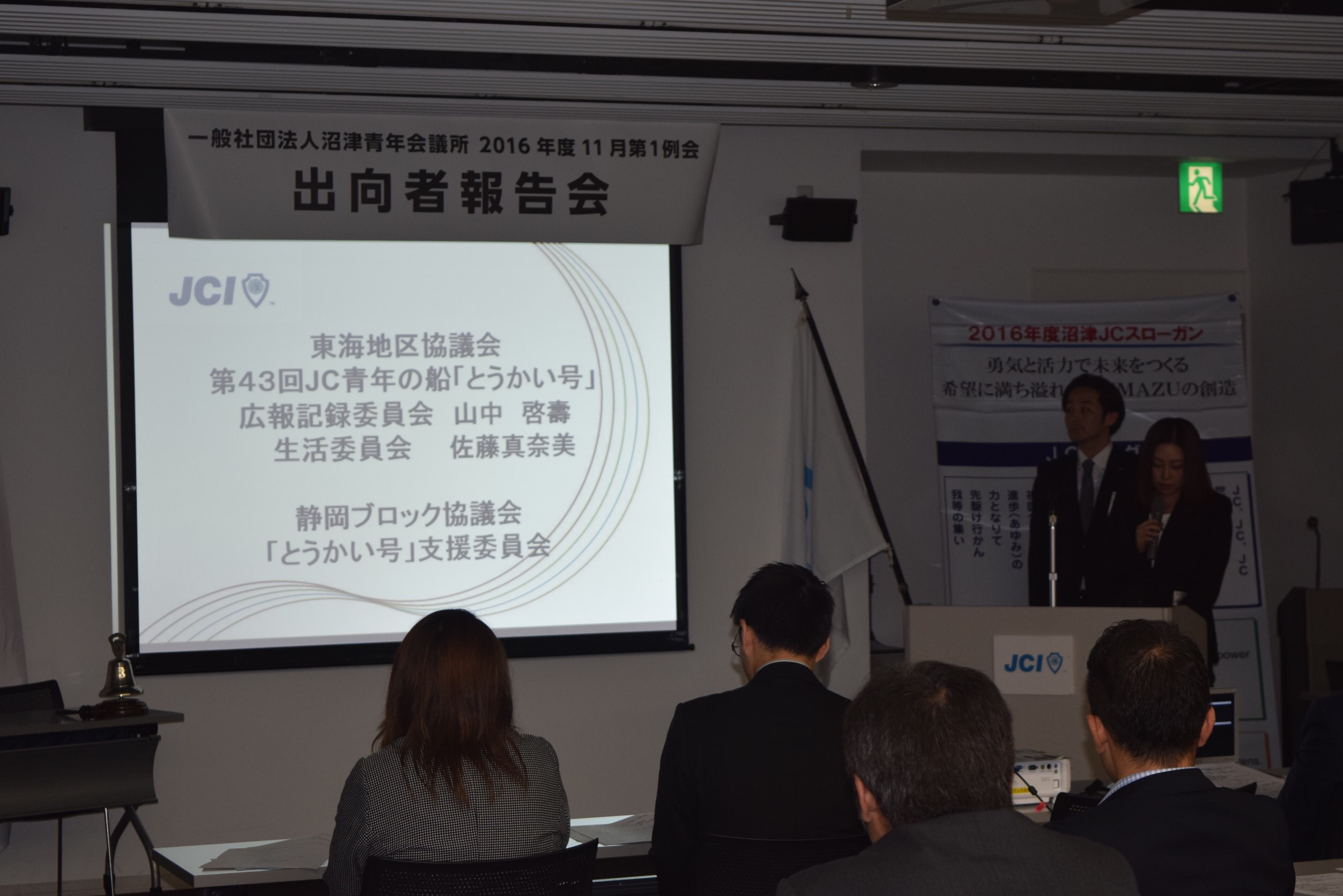 11月8日(火)サンウェルぬまづ大会議室にて2016年度11月第1例会出向者報告会が行われました。
