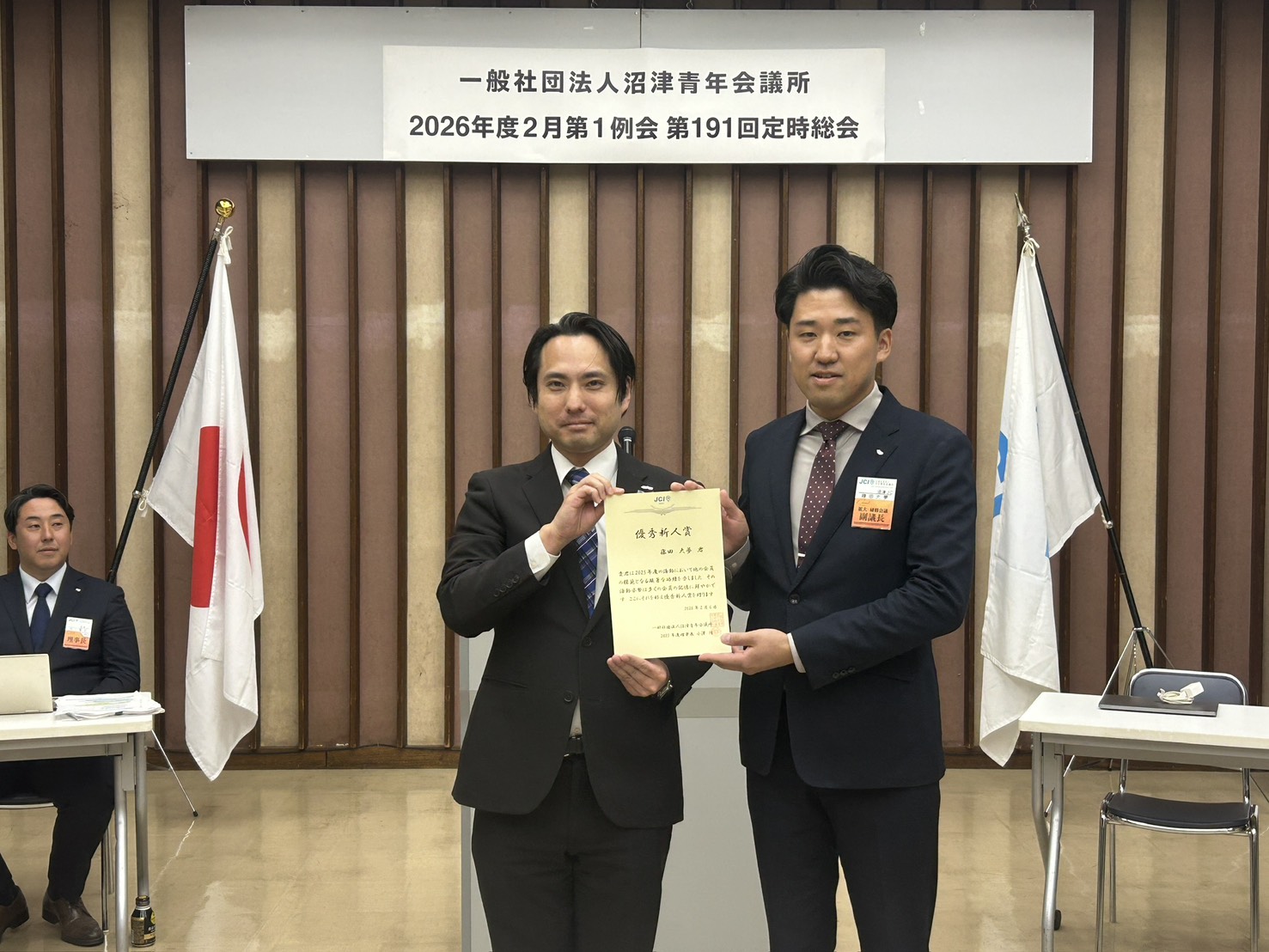 また、2025年度 優秀会員賞および優秀新人賞の表彰も行われ、小澤 隆 直前理事長から賞状と記念品が授与されました。